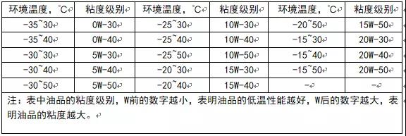 不同環(huán)境溫度適應(yīng)的機油粘度級別